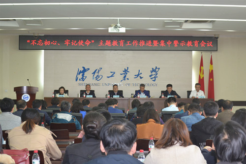 10月11日下午,学校党委在校部五楼会议室召开“不忘初心、牢记使命”主题教育工作推进暨集中警示教育会议。校党委主题教育领导小组及办公室成员,主题教育巡回指导组组长,全校各二级单位党组织书记,党支部书记参加会议。会议由校长、党委主题教育领导小组副组长郭连军主持。