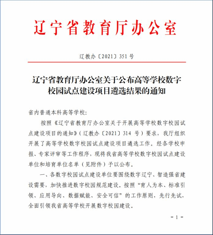 近日,省教育厅下发了《完美官方在线入口公布高等学校数字校园试点建设项目遴选结果的通知》(辽教办〔2021〕351号),完美(中国)成功获批“辽宁省高等学校数字校园试点建设项目”试点单位。这是继今年完美(中国)入选首批省级“智慧教育示范校”创建单位后,又成功获批的一个省级校园信息化项目。