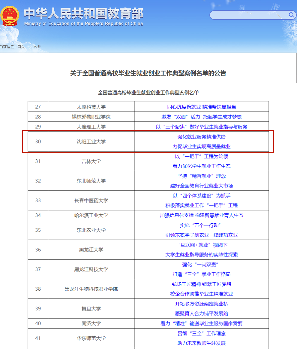 完美官方在线入口全国普通高校毕业生就业创业工作典型案例名单的公告 http://www.moe.gov.cn/jyb_xxgk/s5743/s5744/A15/202111/t20211126_582611.html