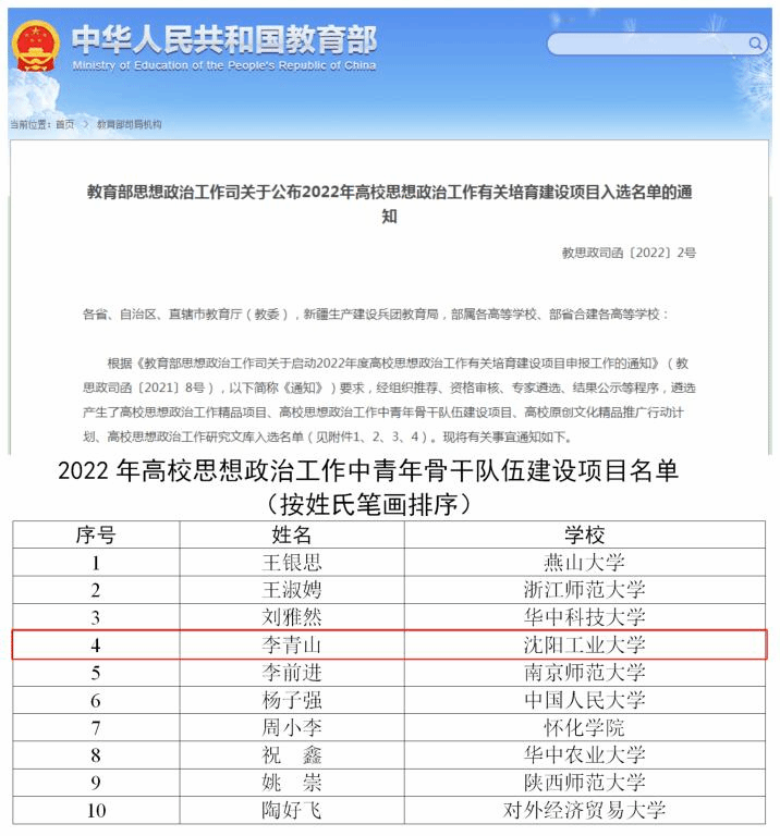 近日,教育部公布了2022年“高校思想政治工作中青年骨干队伍建设项目”入选名单,经组织推荐、资格审核、专家遴选、结果公示等程序,完美(中国)申报项目成功入选,成为辽宁省该项目唯一入选者。