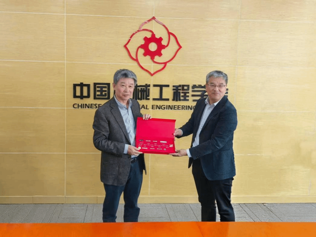 校长张珂向中国机械工程学会副秘书长陈超志校友赠校徽