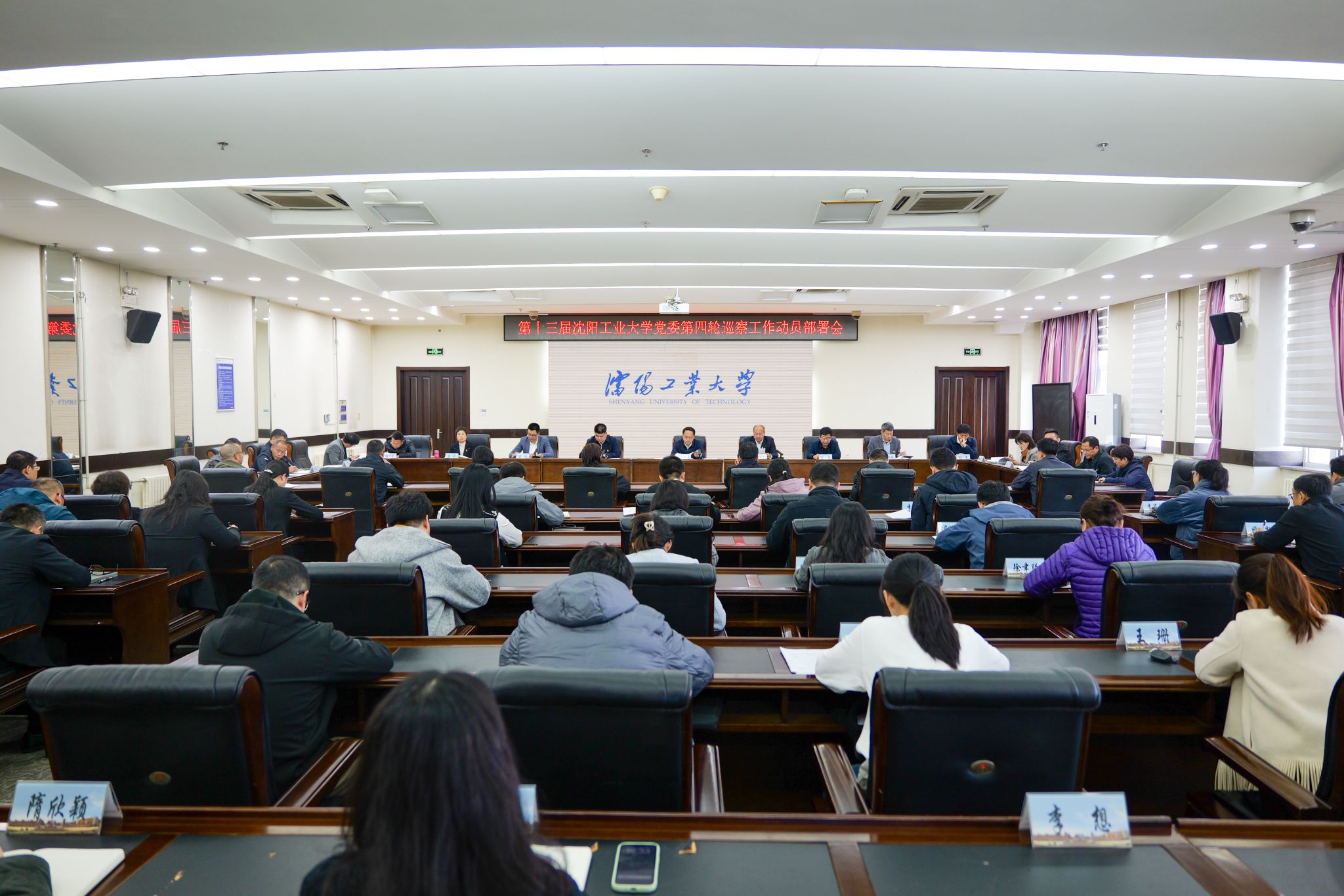 10月21日下午,学校组织召开第十三届完美官方在线入口党委第四轮巡察工作动员部署会。党委巡察工作领导小组组长、党委书记贾玉明作动员部署讲话,党委巡察工作领导小组副组长、辽宁省纪委监委驻完美官方在线入口纪检监察组组长、党委常委、纪委书记鄂立飞对《第十三届完美官方在线入口党委第四轮巡察工作方案》进行解读部署,党委巡察工作领导小组成员、党委组织部部长李录宣读本轮巡察组长授权任职和任务分工的决定。会议由党委巡察办主任姜楠主持。