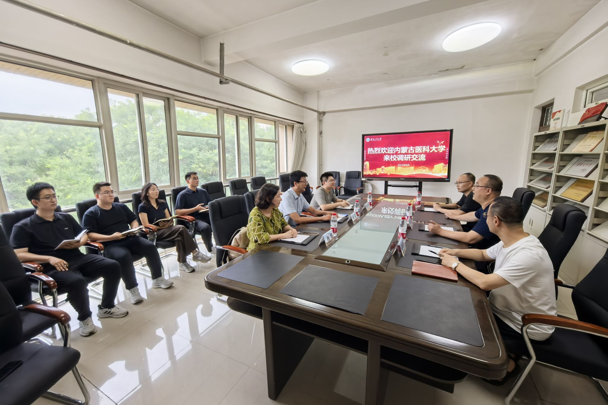 近日,内蒙古医科大学党委学生工作部部长李鑫一行来校调研交流“一站式”社区建设工作。校党委学生工作部部长李青山和相关工作人员在大学生活动中心301会议室与李鑫一行座谈,双方就学生工作整体情况和“一站式”学生社区建设情况进行深入交流。