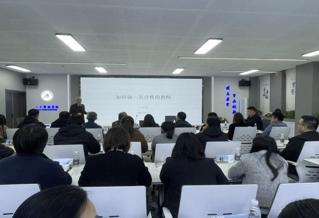 王向东教授以“如何做一名合格的教师”为题,结合自身从教几十年的丰富经验,从“何为师”“何为学”“何为范”三个层面,通古论今、博引中外,用深入浅出的语言、翔实鲜活的案例、精准深刻的分析,解读经典教育理念,阐释教师职业行为对学生的深远影响,引导青年教师认真审视“为师之道”,体现了退休老教师的育人情怀,彰显了老一辈教育工作者的使命担当。他强调,教师不仅要有扎实的学识,更应具备高尚的师德师风,在言传身教中培根铸魂、启智润心。青年教师要坚定理想信念,厚植教育情怀,严于律己,率先垂范,以仁爱之心践行育人初心,以专业精神投身教学科研实践,努力成长为学生敬仰、同事敬重、社会认可的优秀教育工作者,真正成为学生成长的引路人。