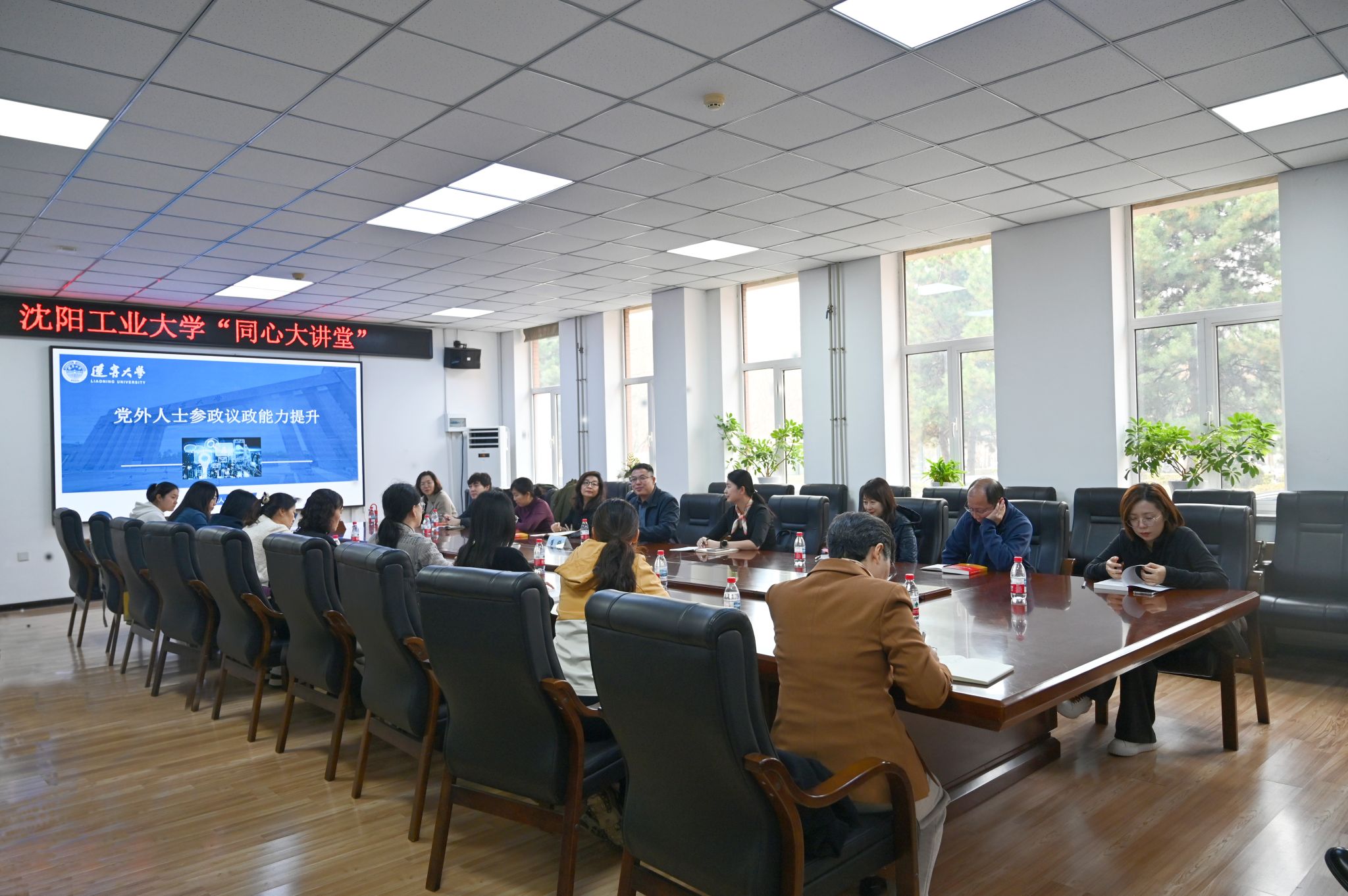为深化党外人士对全会精神的理解把握,提升党外人士参政议政能力,更好地推动学习成果转化,学校“同心大讲堂”邀请辽宁大学崔铮教授围绕学习中共二十届四中全会精神,就如何聚焦“十五五”规划建议战略任务,精准选题、深入调研、撰写高质量信息、提案、调研报告作专题辅导。与会党外人士纷纷表示将持续深入学习,提升履职能力,将学习成果转化为围绕中心、服务大局的自觉行动和实际成效。