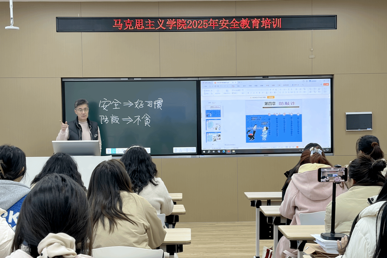 为切实增强学生的安全防范意识,提升应对各类风险的能力,营造安全、稳定、和谐的校园环境,11月11日,马克思主义学院特邀学院党总支书记曲弋在思政课智慧教室为同学们进行了一场内容丰富、生动实用的校园安全教育培训。