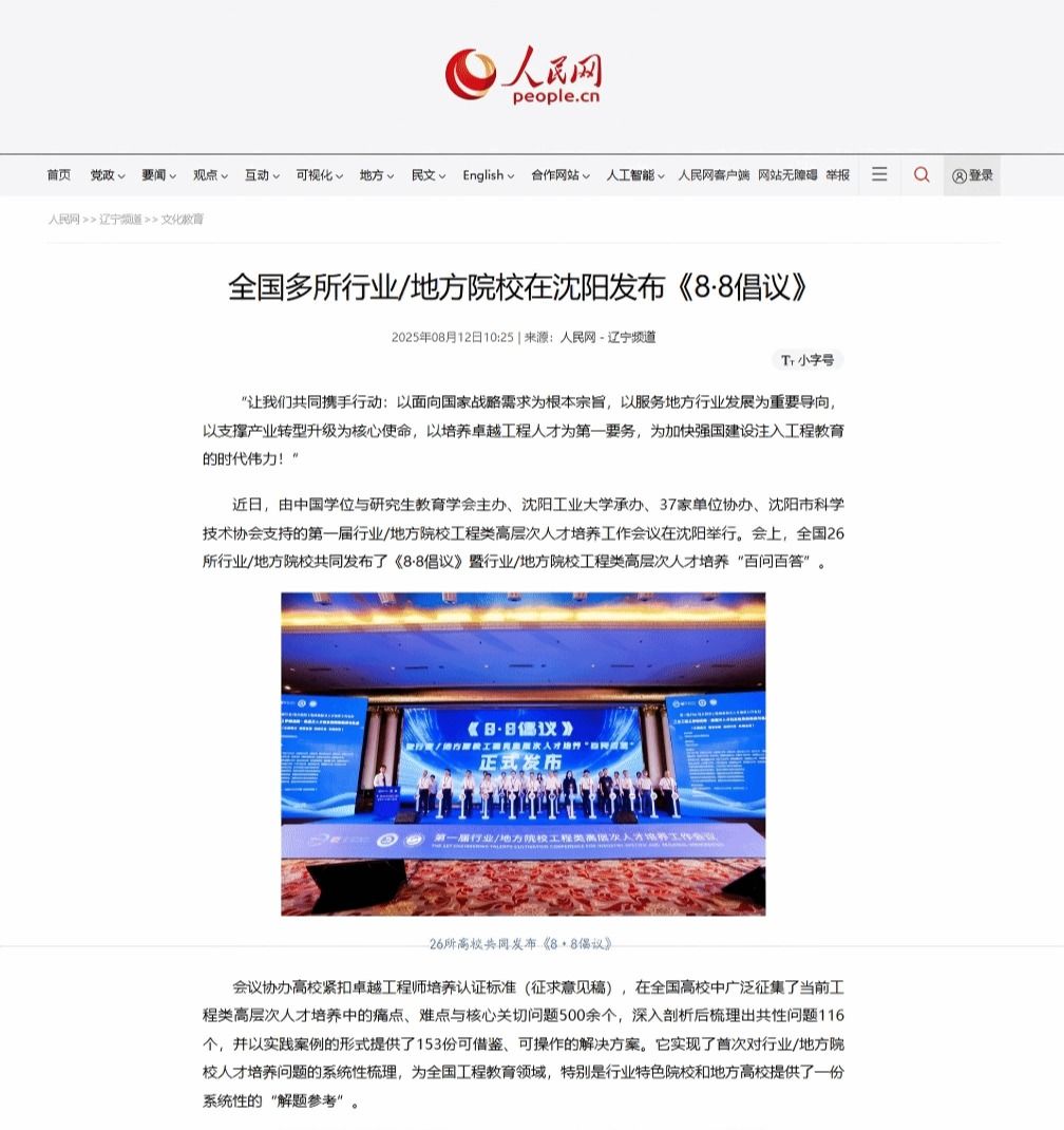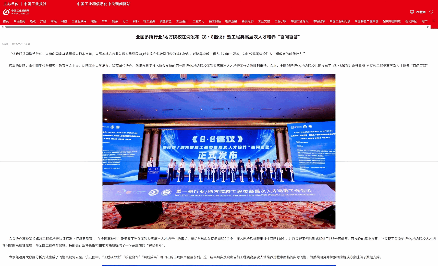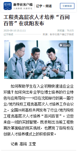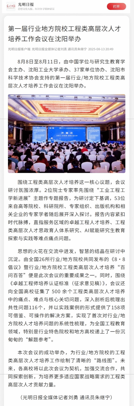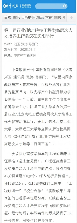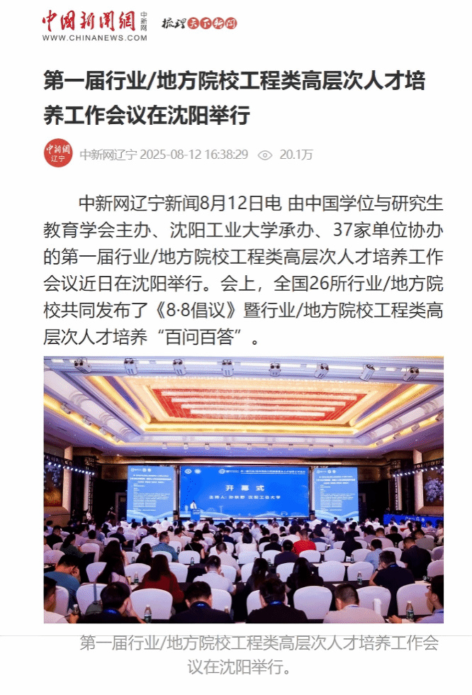 8月8日至8月11日,由中国学位与研究生教育学会主办、完美官方在线入口承办、37家单位协办、沈阳市科学技术协会支持的第一届行业/地方院校工程类高层次人才培养工作会议在沈阳举办。多家媒体对此进行报道。