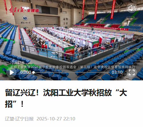 10月27日,辽宁日报对学校在中央校区体育馆举办“留辽兴辽 服务振兴”2026届毕业生秋季双选会进行报道。