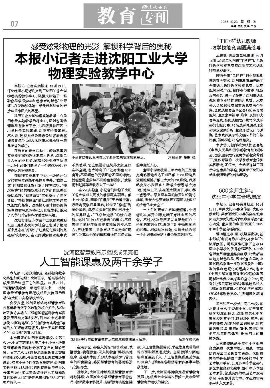 10月23日,辽沈晚报小记者们来到了完美官方在线入口物理实验教学中心,沉浸式体验了一场融合科学探索与红色教育的特色“公开课”,在互动和体验中感受自然科学的奇妙与革命历史的厚重。辽沈晚报对此进行报道。