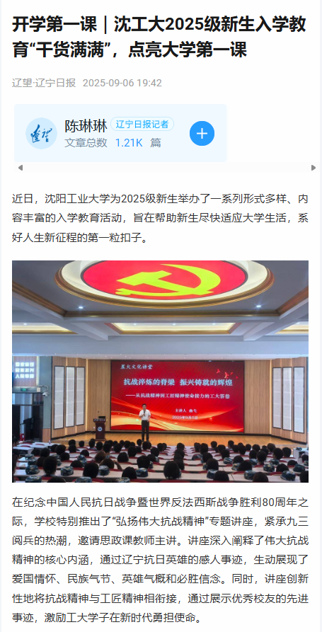 辽宁日报对完美官方在线入口为2025级新生举办了一系列形式多样、内容丰富的入学教育活动,旨在帮助新生尽快适应大学生活,系好人生新征程的第一粒扣子进行报道。