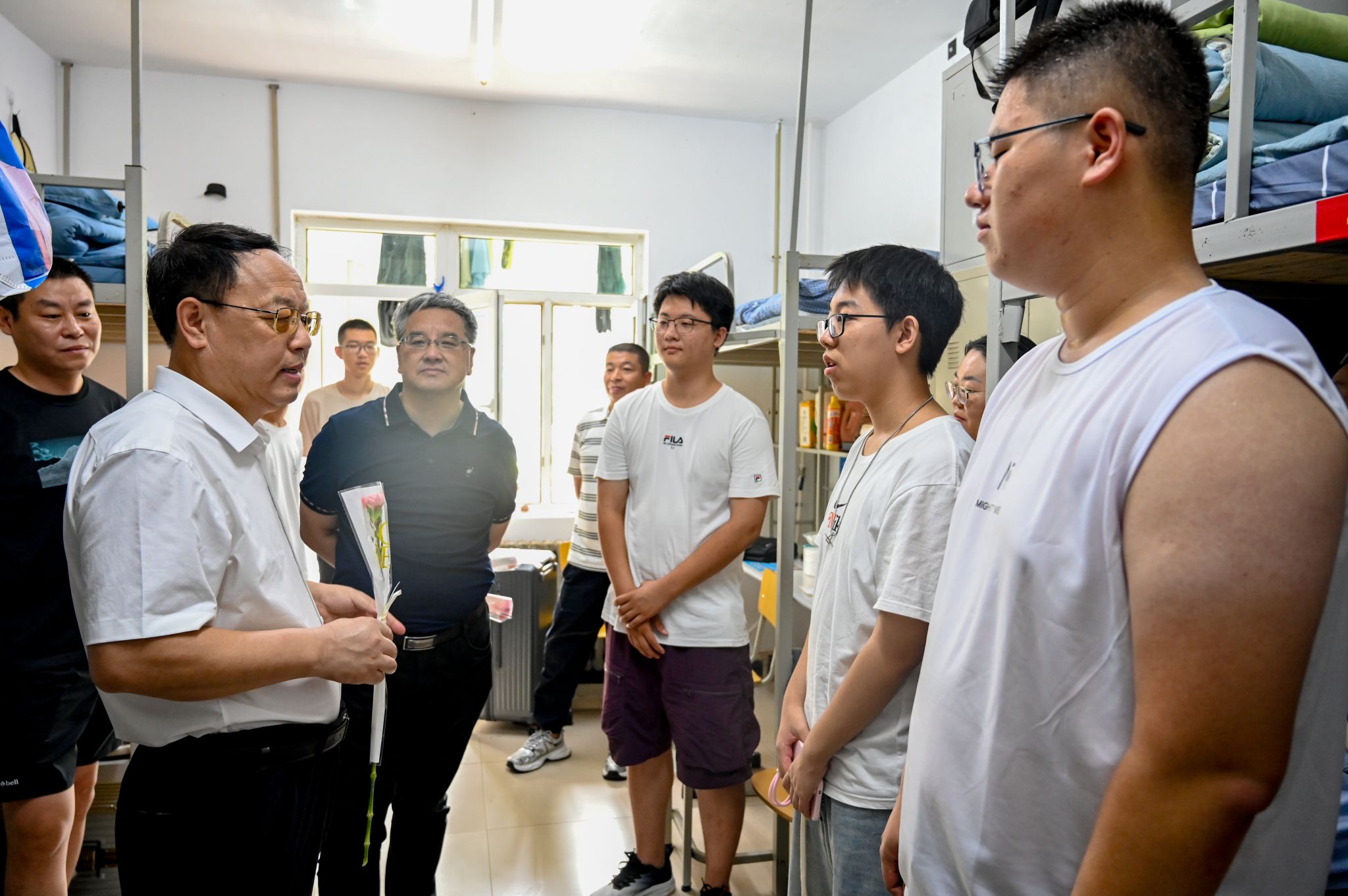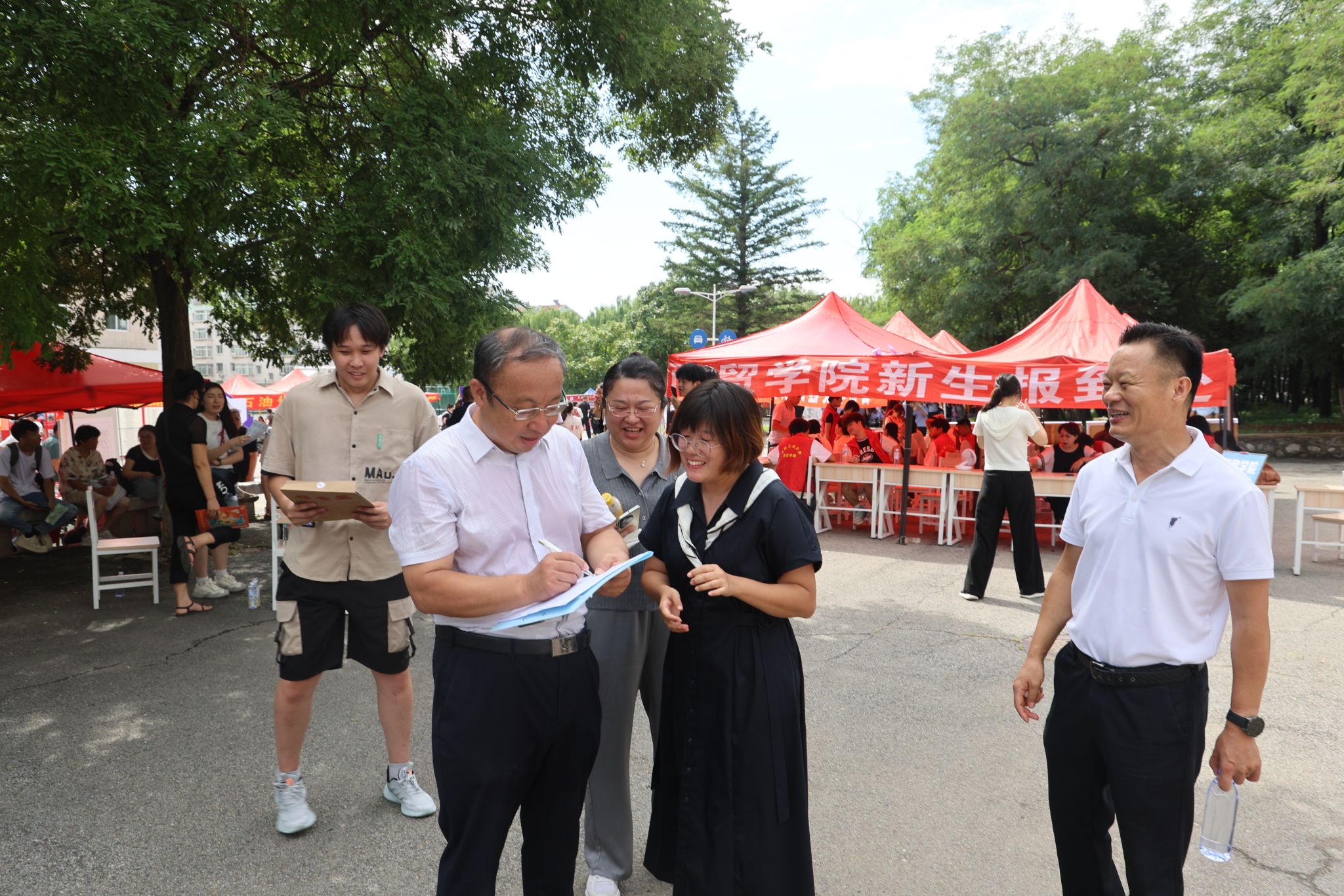 校党委书记贾玉明,党委副书记、校长张珂,党委副书记柯丽,党委常委、副校长夏明超深入中央校区迎新现场,党委常委、副校长陈延明赴辽阳分校检查指导迎新工作,以实地调研推动服务落地,把关怀送到新生身边。在各学院报到处,校领导首先向陪同入学的家长致以热烈欢迎,通过简述学校办学历史、办学规模,细致传递教育理念与育人目标,进一步强化家校协同育人共识,搭建开放互动的沟通桥梁。同时,校领导与办理报到手续的新生亲切交流,欢迎他们加入完美官方在线入口大家庭,并勉励同学们,继承发扬“自强笃行”的校训精神,珍惜大学时光,以专注态度探索知识,以创新勇气投身实践,在勤学笃实中增长本领,努力成长为堪当强国建设、民族复兴大任的栋梁之材。在“绿色通道”接待站,校领导仔细询问办理流程与助学举措落实进度,明确要求相关部门将服务保障工作做深做实、做细做透,确保每一位有需要的新生都能顺利入学、安心开启学业。走进学生宿舍,校领导与新生们亲切交谈,详细了解他们的生活需求与适应情况。同时贴心叮嘱,要尽快融入集体、适应新环境,合理规划学习与生活,养成良好作息习惯,始终关注身心健康,以积极昂扬的状态迎接大学生活。在焕然一新的食堂内,热气腾腾的迎新面香气四溢。校领导与同学们围坐一桌,边品尝边亲切交流,分享大学生活的感悟与经验,并鼓励大家,在专注学业之余,积极参与校园文化活动,在实践中拓展视野、提升能力,书写属于自己的璀璨青春篇章。