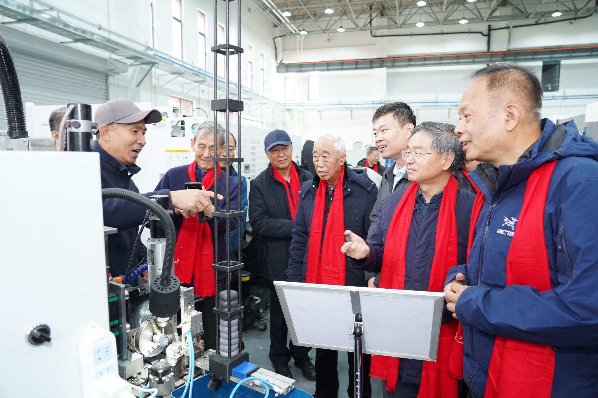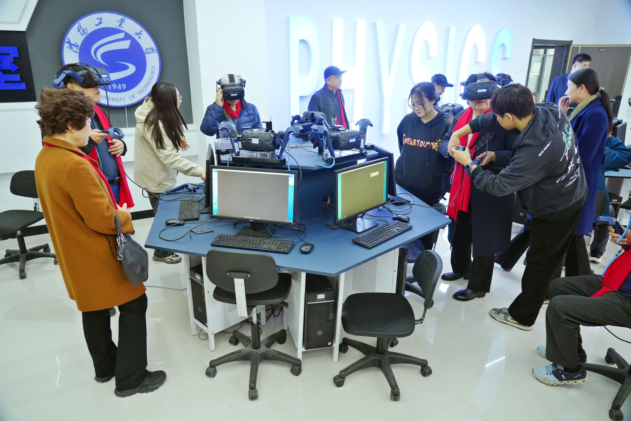 座谈会后,老同志们观赏中央校区景色并合影留念,实地走访工程实训中心、物理实验中心等教学实践场所,深入了解学校近年来在人才培养、科研创新等方面的发展成果,现场体验了VR技术等先进教学辅助设备。
